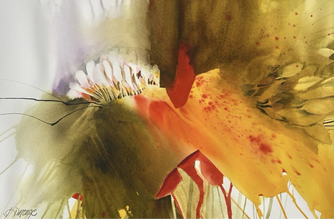 Silvia Monge (San José, Costa Rica, 1959) es una artista visual cuya trayectoria se extiende por varias décadas. Como ella misma dice, sobre su relación íntima con la acuarela y el acto de crear: “Para mí, pintar acuarela es viajar libre y espontáneamente a través de una experiencia maravillosa.” Su interés por distintos materiales y formas de expresión la ha llevado a trabajar en cerámica, vidrio, acuarela, acrílico y dibujo. Cada técnica la ha abordado a partir de sus propios desafíos y posibilidades, descubriendo cómo cada una le permite expresar su visión del mundo de manera distinta.