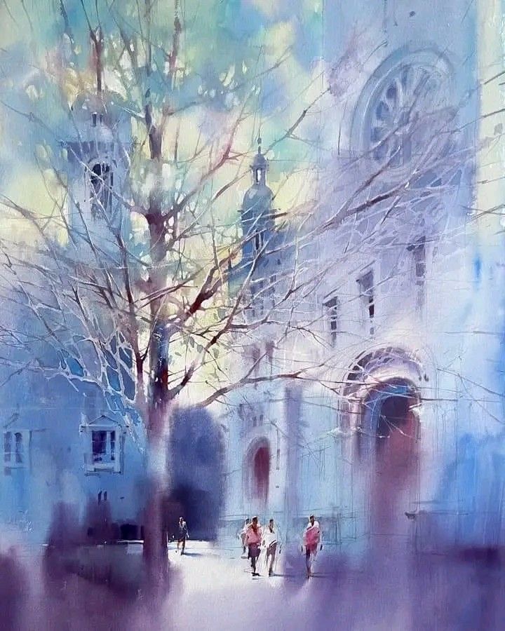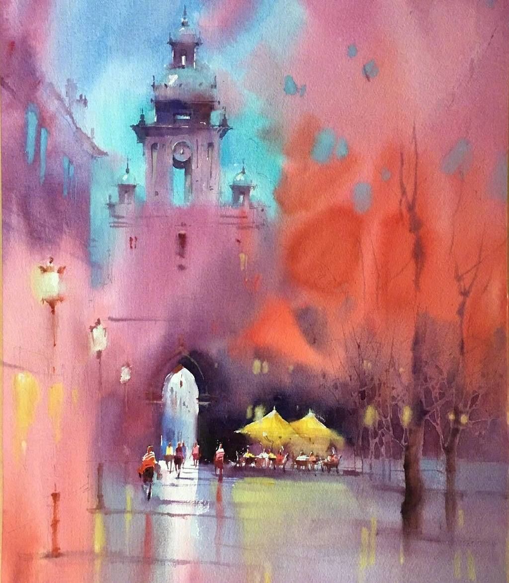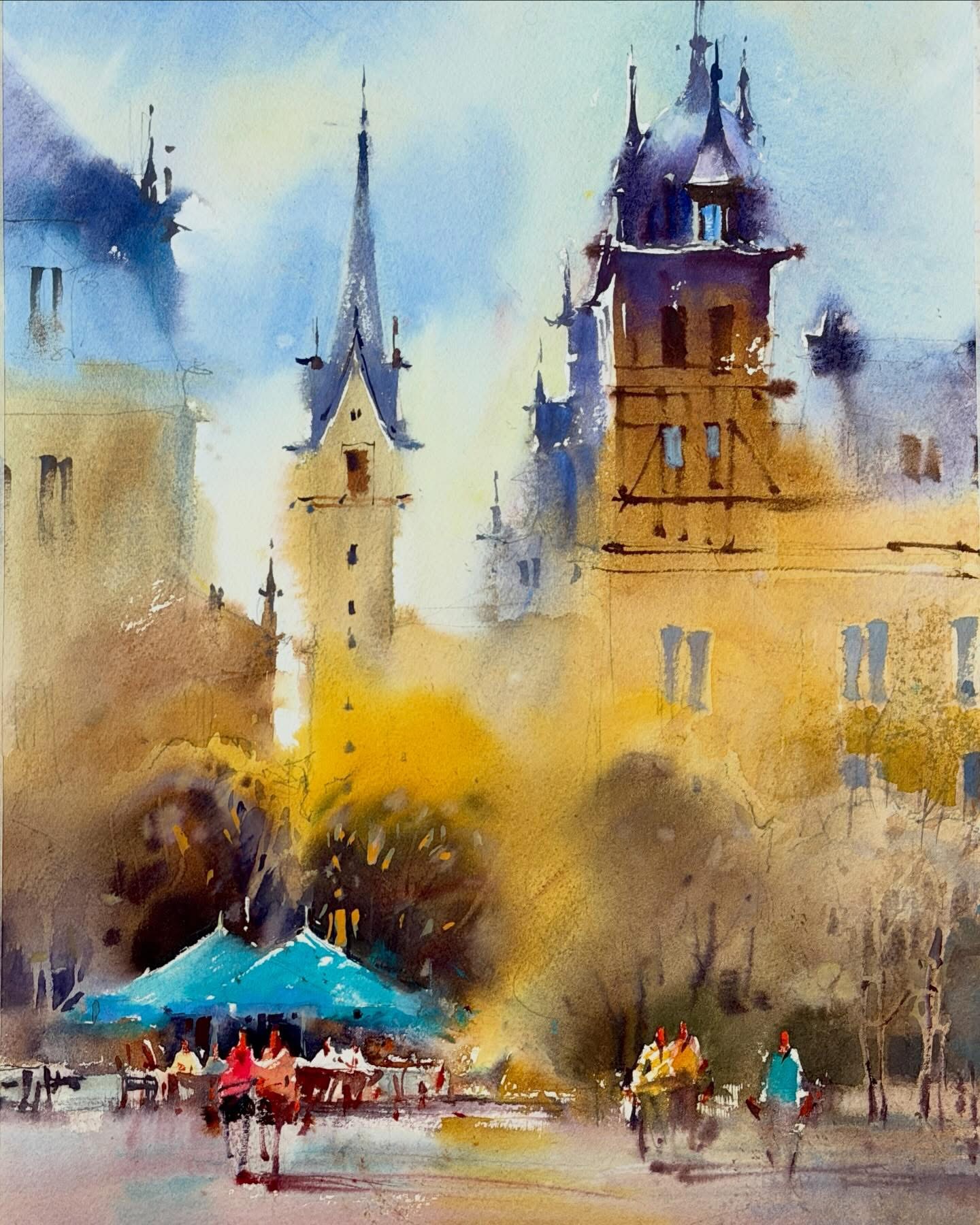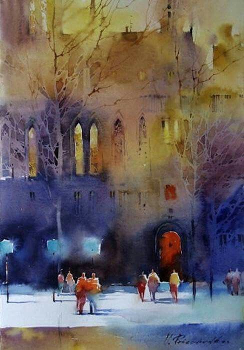 Viktoria Prischedko (Kishinev, Moldavia, 1964). Es una pintora internacionalmente reconocida por su excepcional trabajo en acuarela, especialmente en escenas urbanas y paisajes con una sensibilidad poética y técnica notable. Se formó en la Academia de Bellas Artes de Kiev (Ucrania) y en la Escuela de Arquitectura del Monumento en Trieste, combinando formación arquitectónica con una profunda expresividad pictórica.