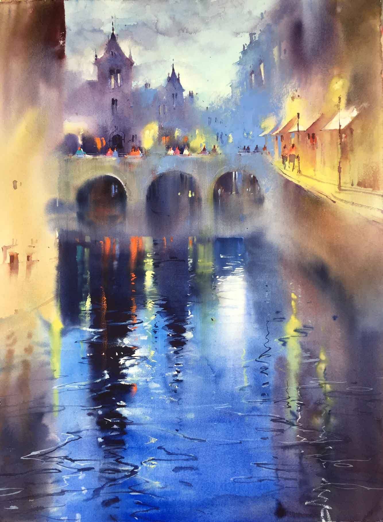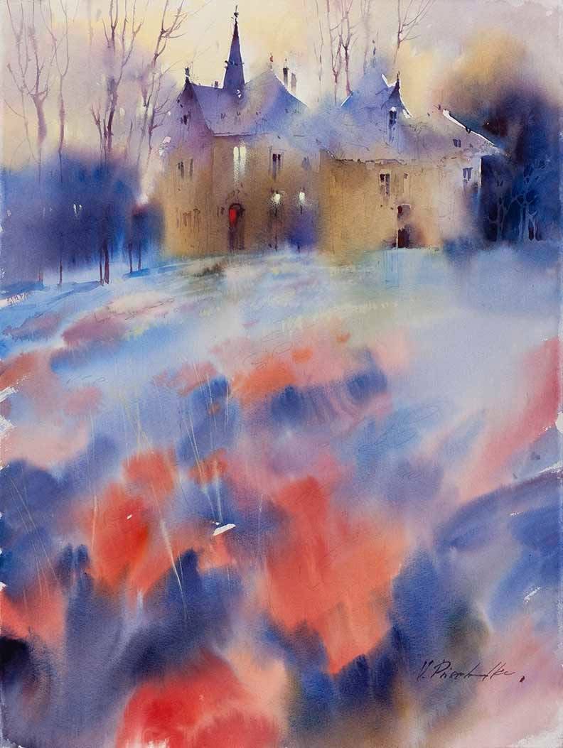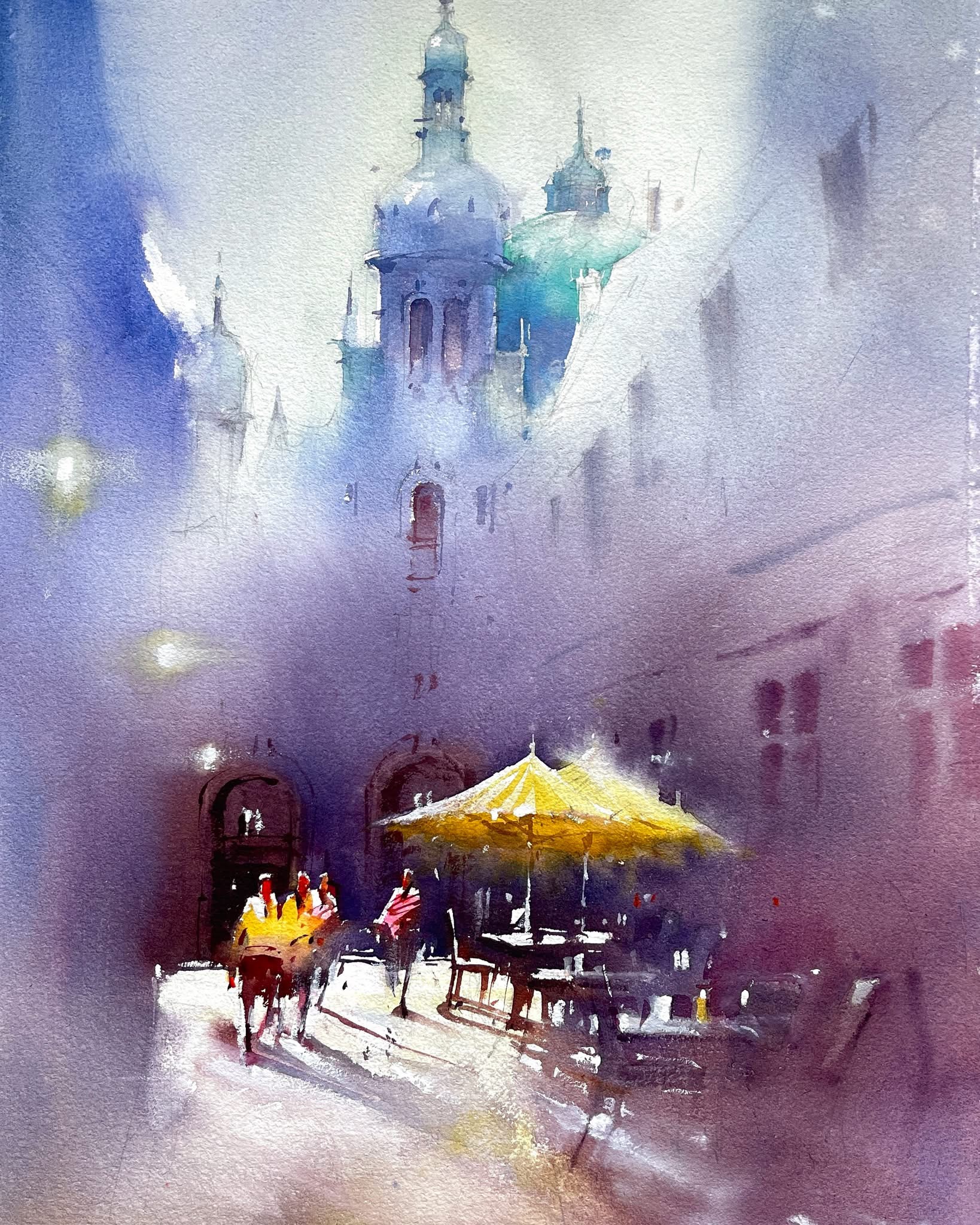 Viktoria Prischedko (Kishinev, Moldavia, 1964). Es una pintora internacionalmente reconocida por su excepcional trabajo en acuarela, especialmente en escenas urbanas y paisajes con una sensibilidad poética y técnica notable. Se formó en la Academia de Bellas Artes de Kiev (Ucrania) y en la Escuela de Arquitectura del Monumento en Trieste, combinando formación arquitectónica con una profunda expresividad pictórica.