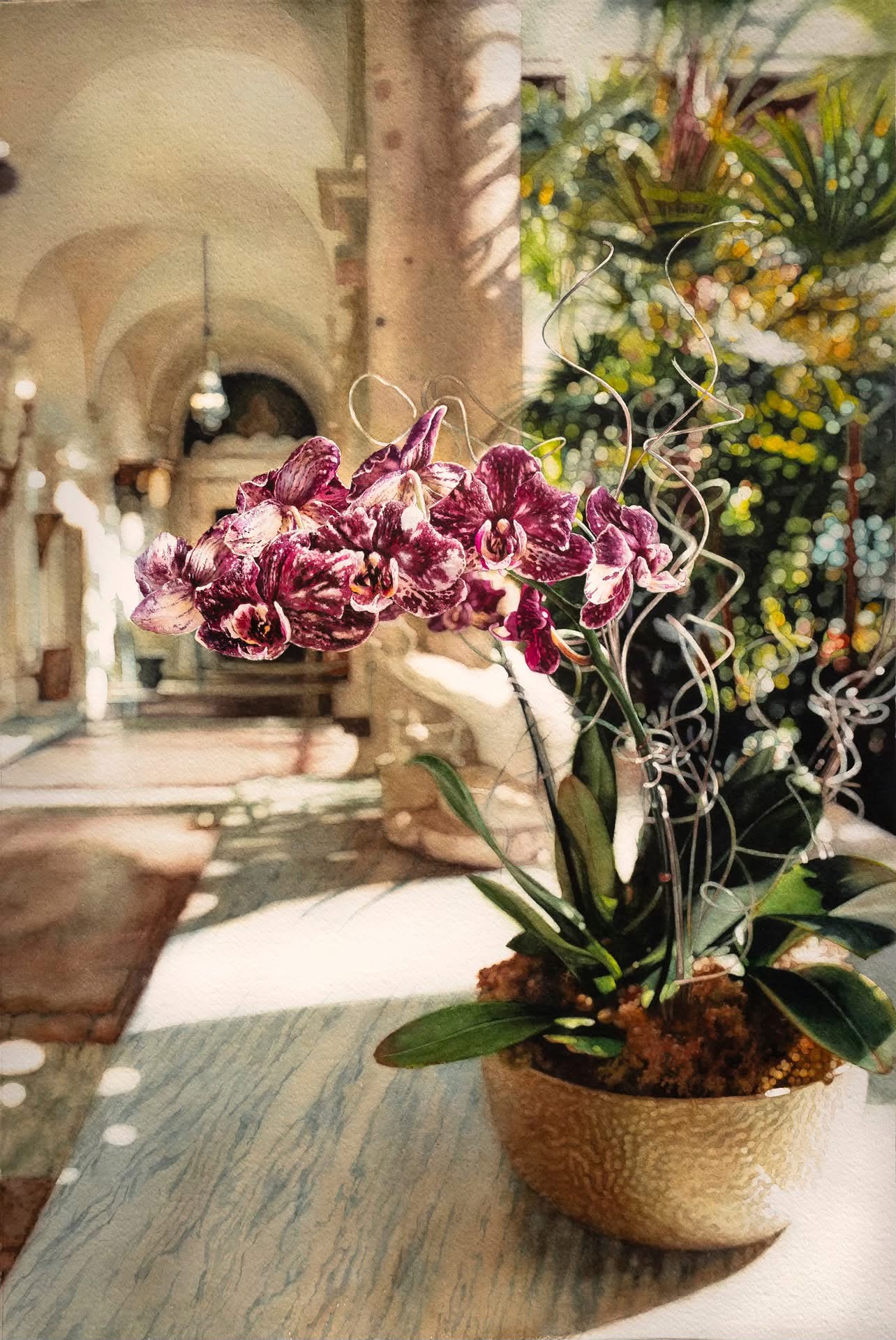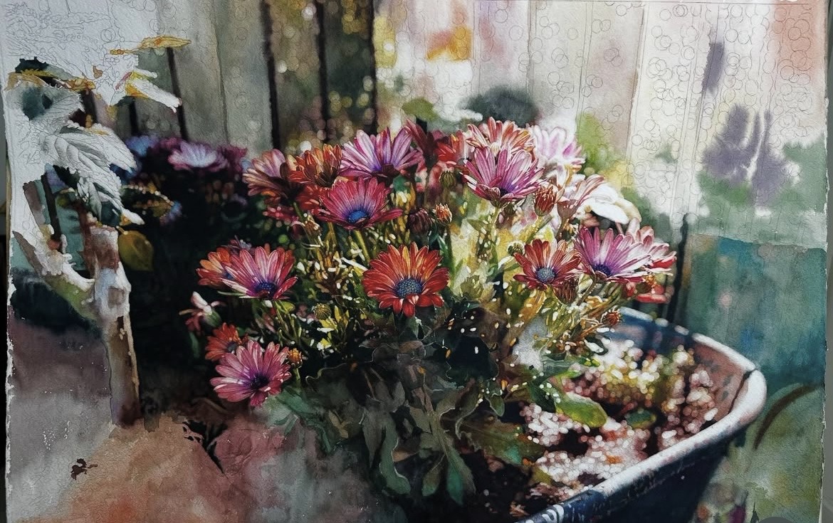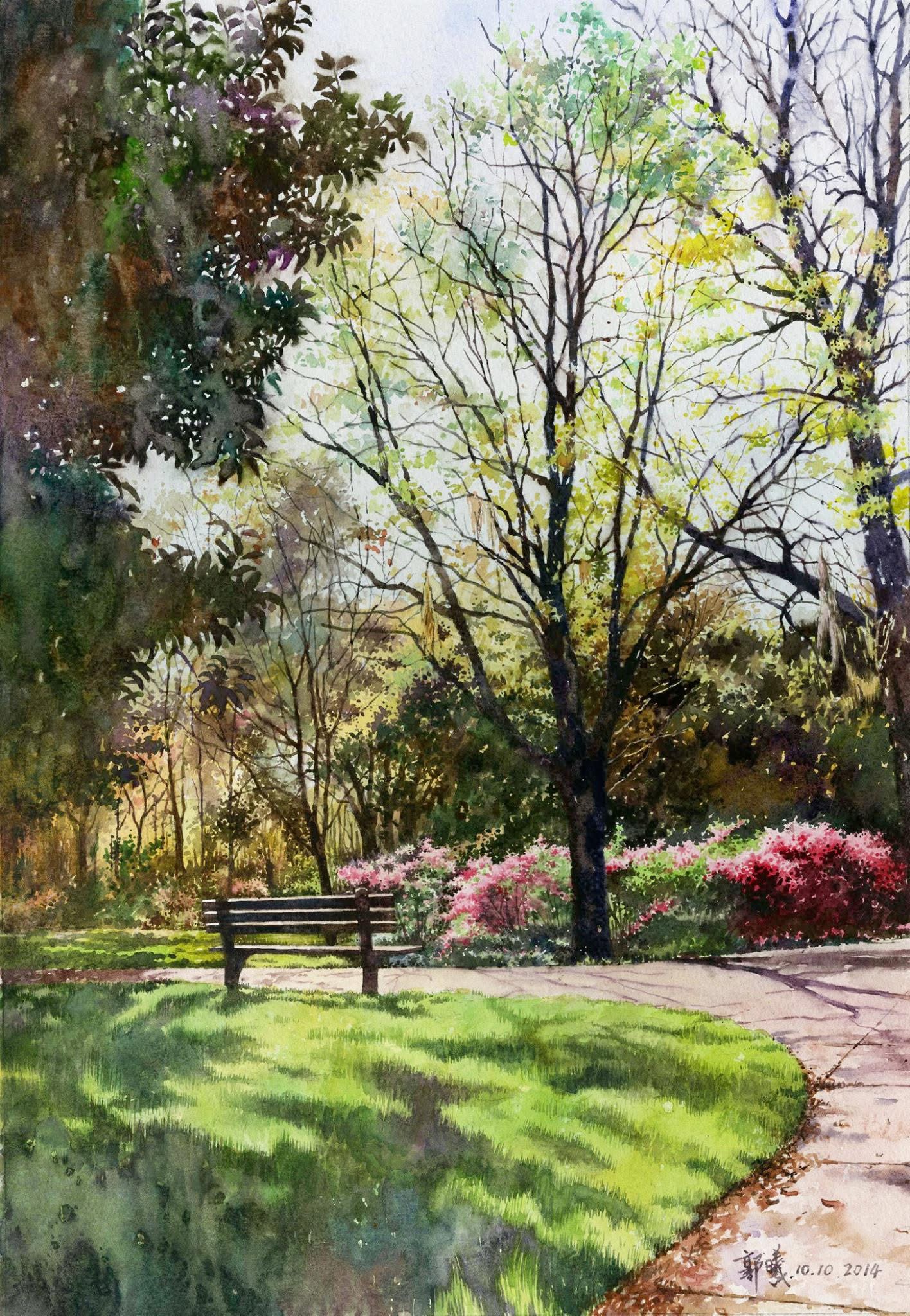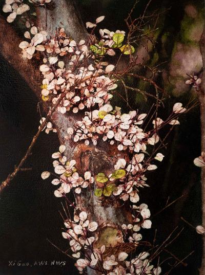 Xi Guo (Shanghai, China, 1975) es una gran acuarelista y artista visual radicada en St. Augustine, Florida (EE.UU). Creció en Shanghái, estudió pintura al óleo en Shanghai Normal University y luego se especializó en fotografía en EE.UU. Su interés en la acuarela surgió hace más de una década, cada acuarela refleja su atención al detalle, la sutileza de la luz y el color, y una mirada íntima hacia la naturaleza y la fugacidad de la vida, como lo dice ella misma: “Mis pinturas buscan llevar al espectador fuera de sí mismo, aunque sepan que todo es efímero; la acuarela, con su transparencia, incertidumbre y fragilidad, me permite expresar ideas y sentimientos de manera sutil y directa.”