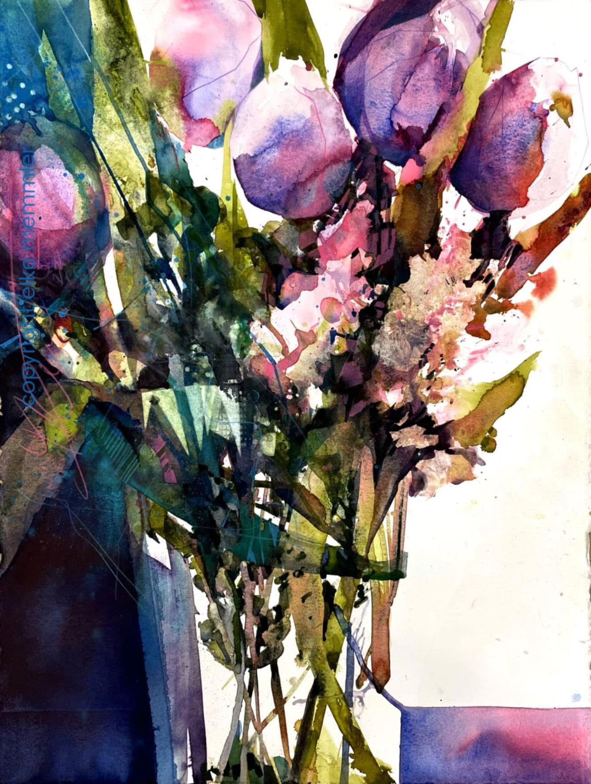 La acuarela, como el expresionismo, es mi patria artística. Es una herramienta por un lado y una pasión por el otro. En concreto, no me interesa la realidad botánica, sino la impresión que deja una flor en mí. Esta impresión actúa en mí y surge mi expresión, mi pintura. La acuarela como técnica ofrece la mayor variedad de expresiones. Una acuarela moderna y expresiva necesita de todo. Necesita lo concreto y lo difuso, lo fuerte y lo tranquilo, lo dominante y lo modesto, lo luminoso y lo oscuro, algo de todo, como el ying y el yang. En el equilibrio está el secreto."