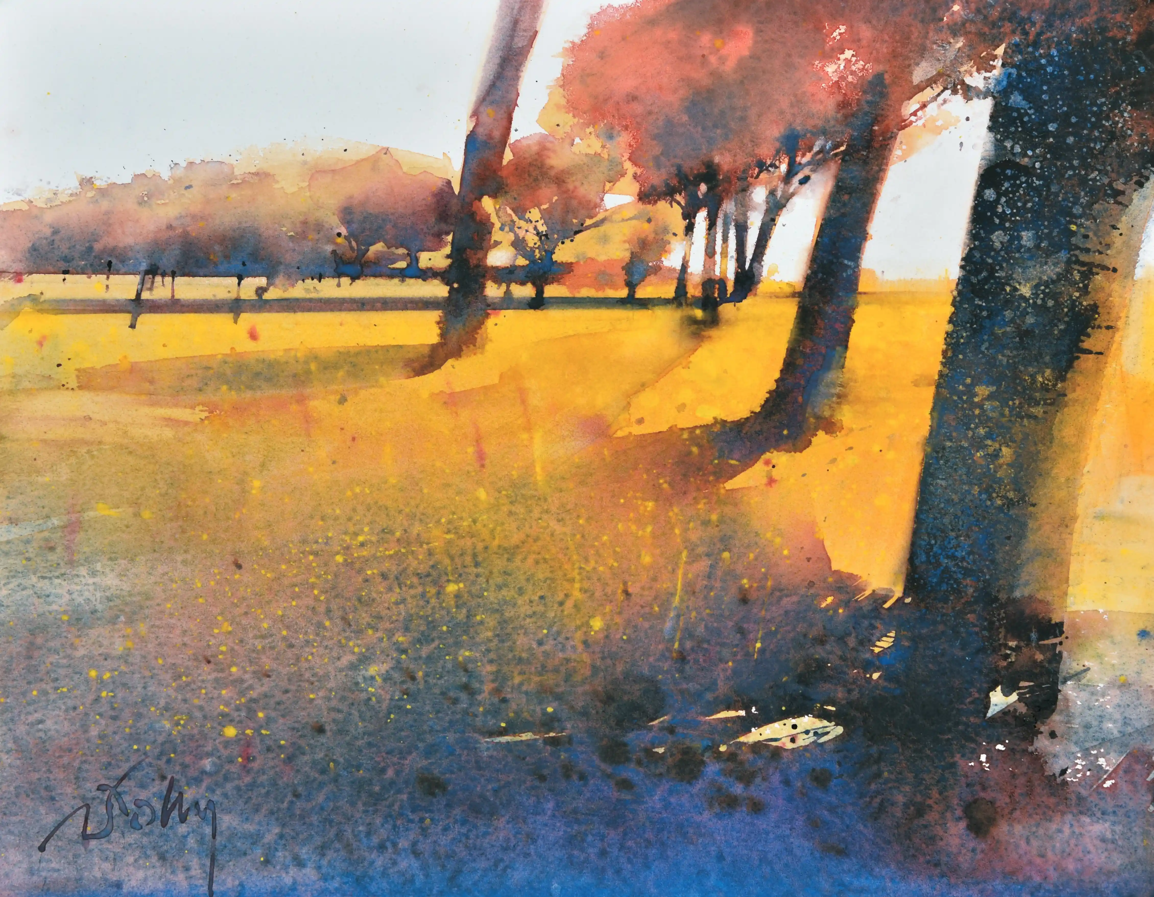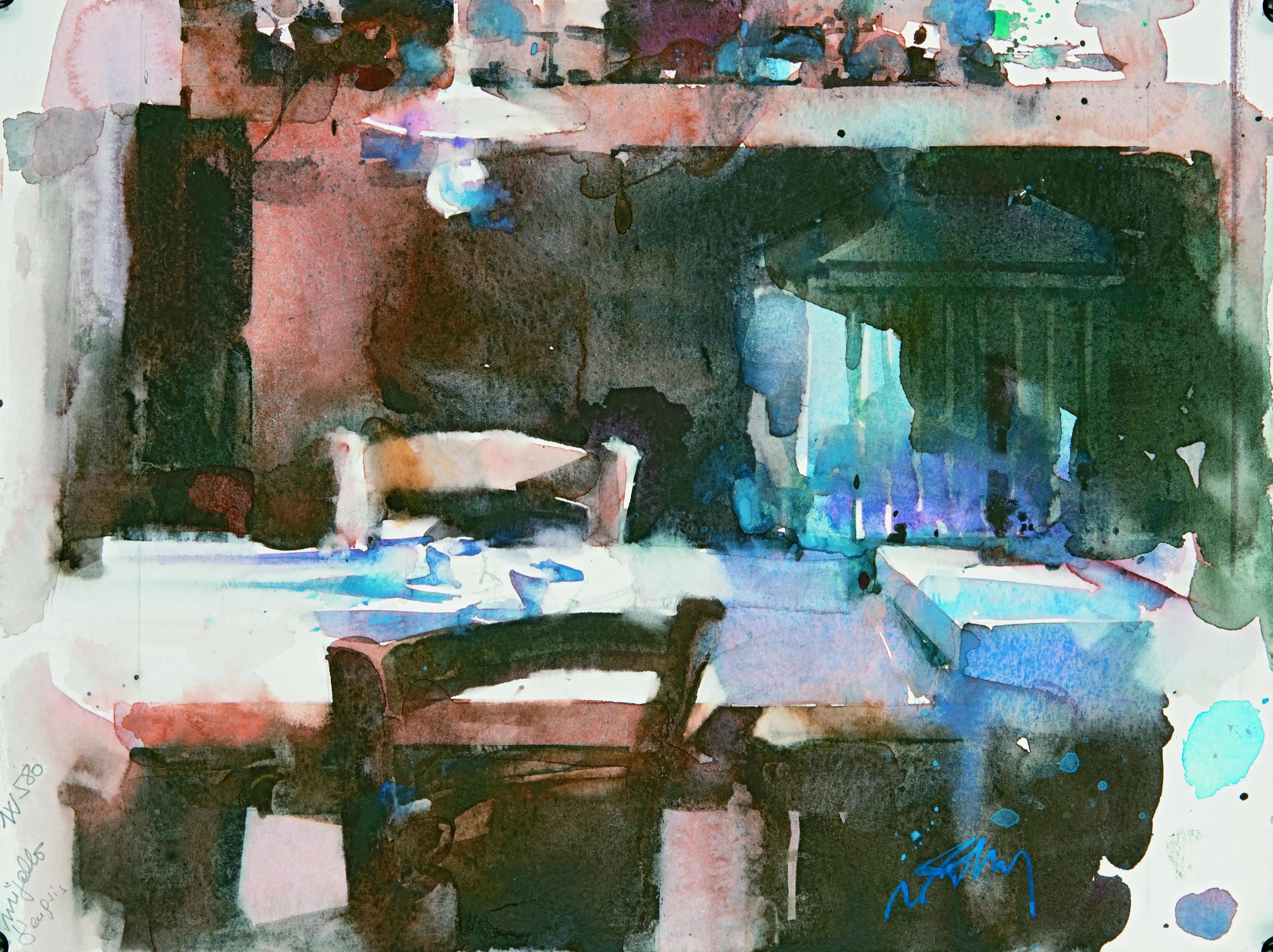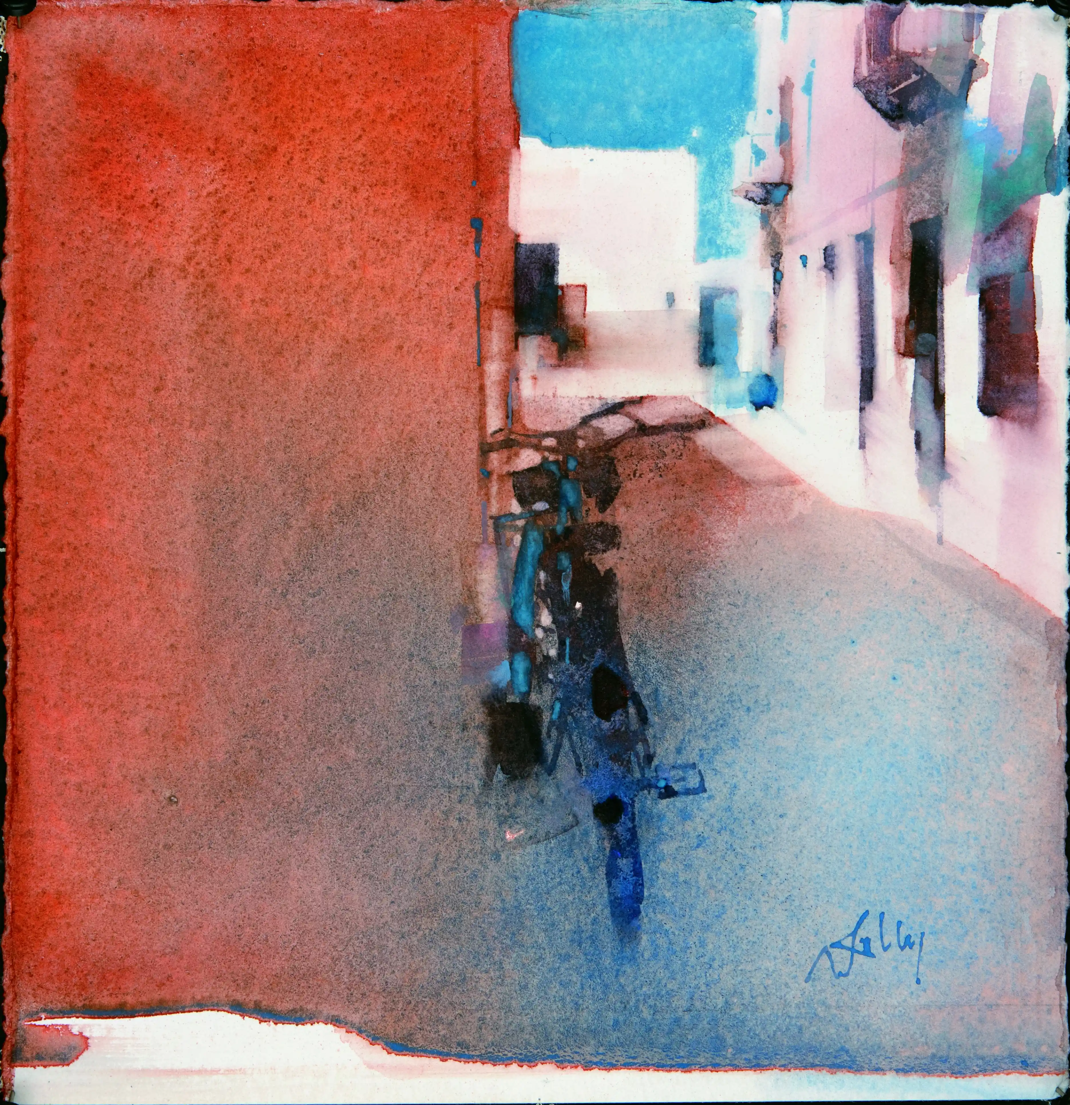 Es amante de las formas y los contrastes inesperados en la acuarela.