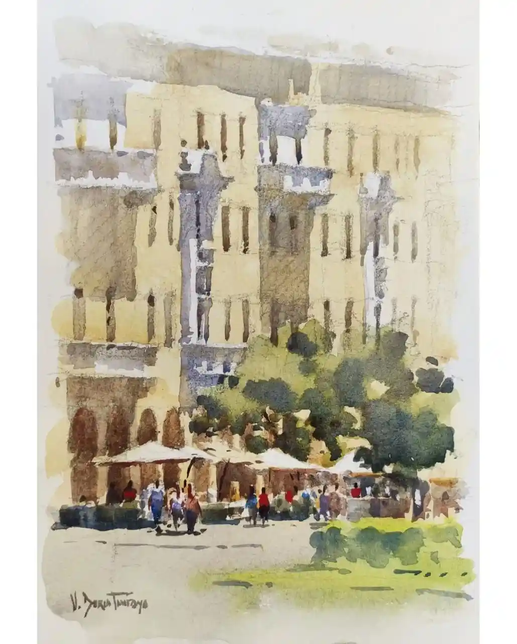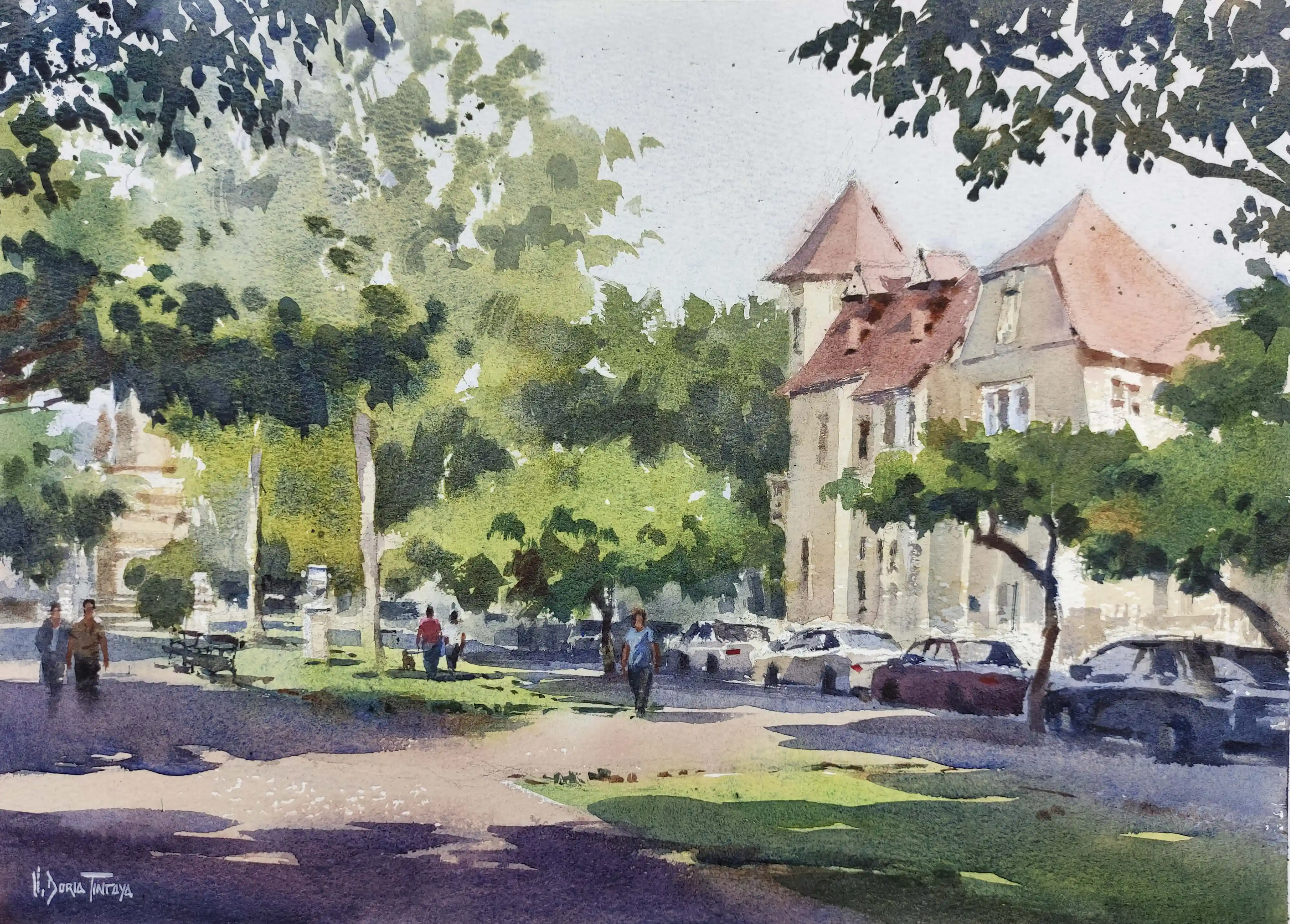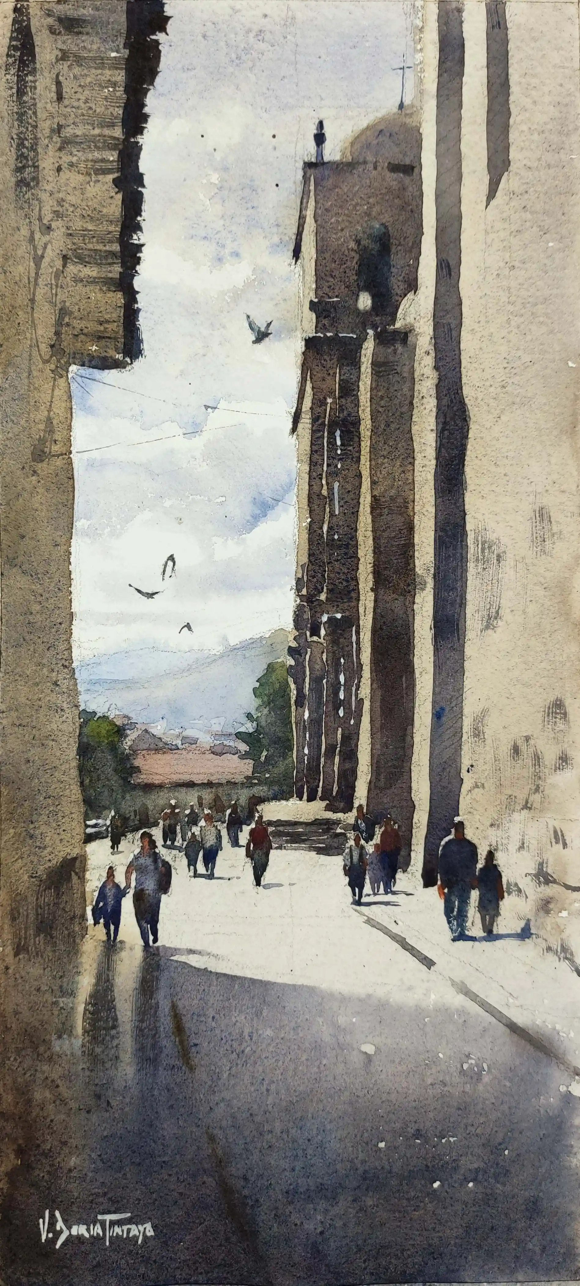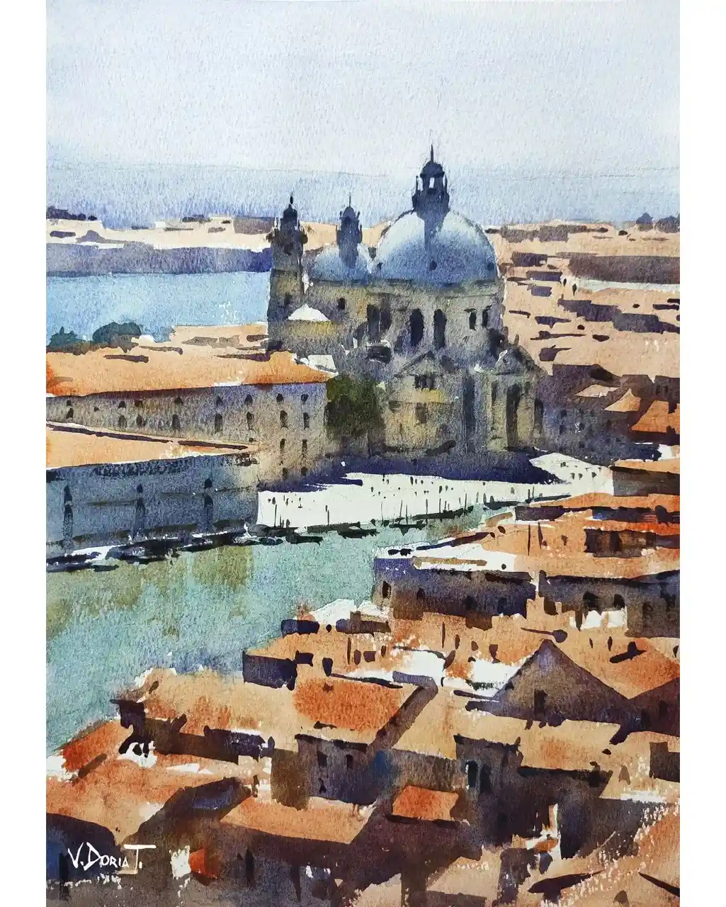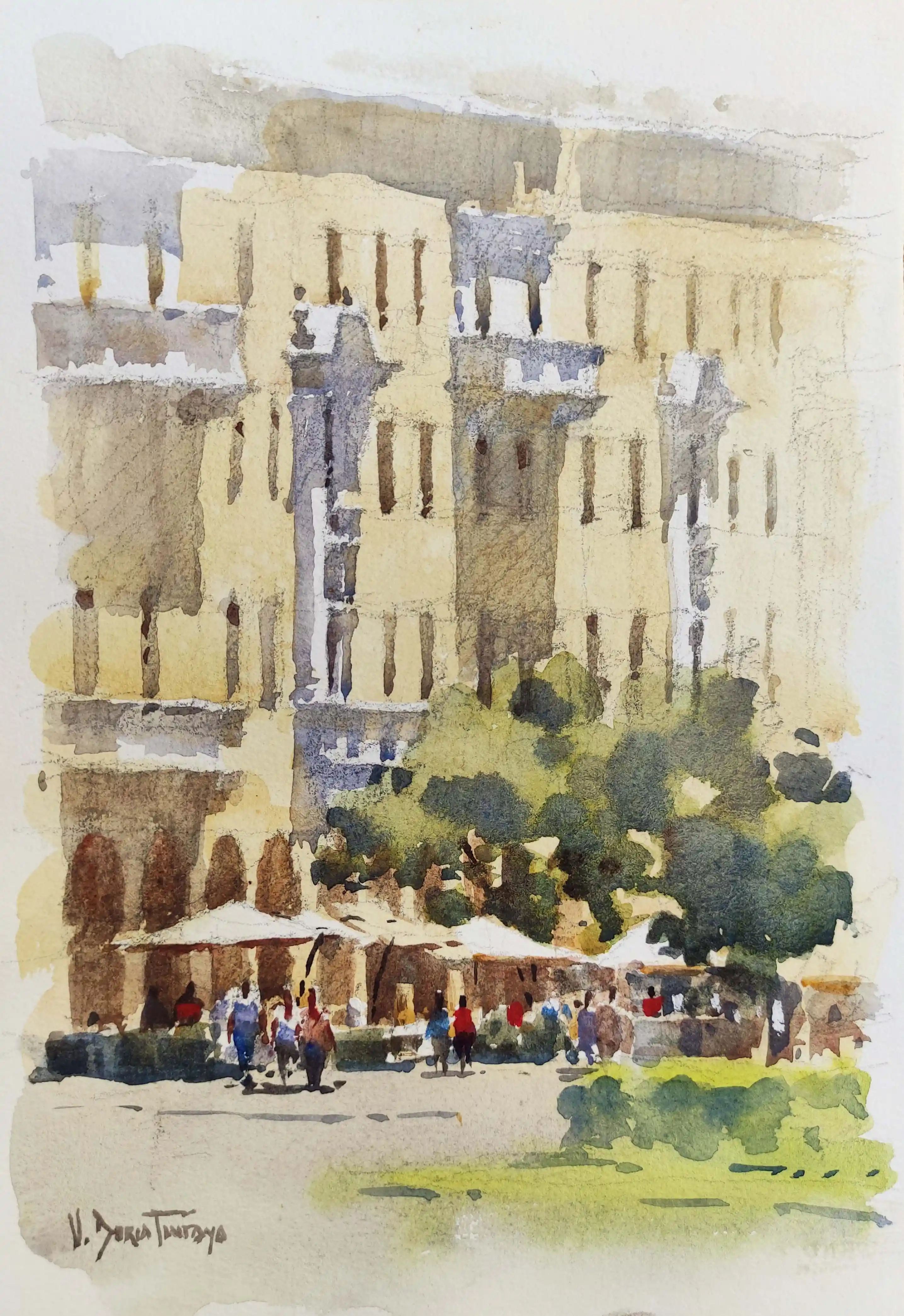 Encontró en la acuarela un medio natural para expresar su interés y pasión por la arquitectura histórica, el paisaje rural, la dinámica de las ciudades y la mejor manera de registrar recuerdos durante sus viajes.