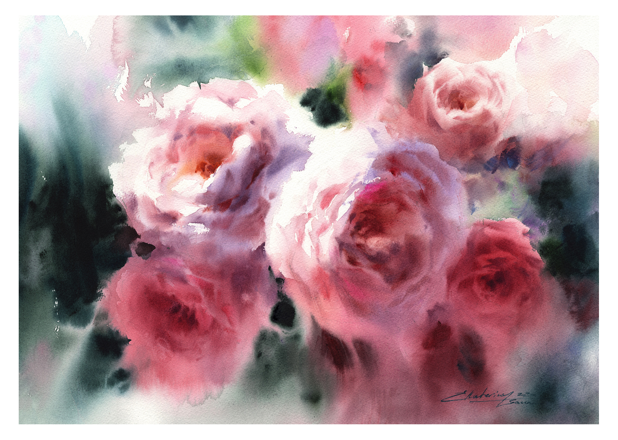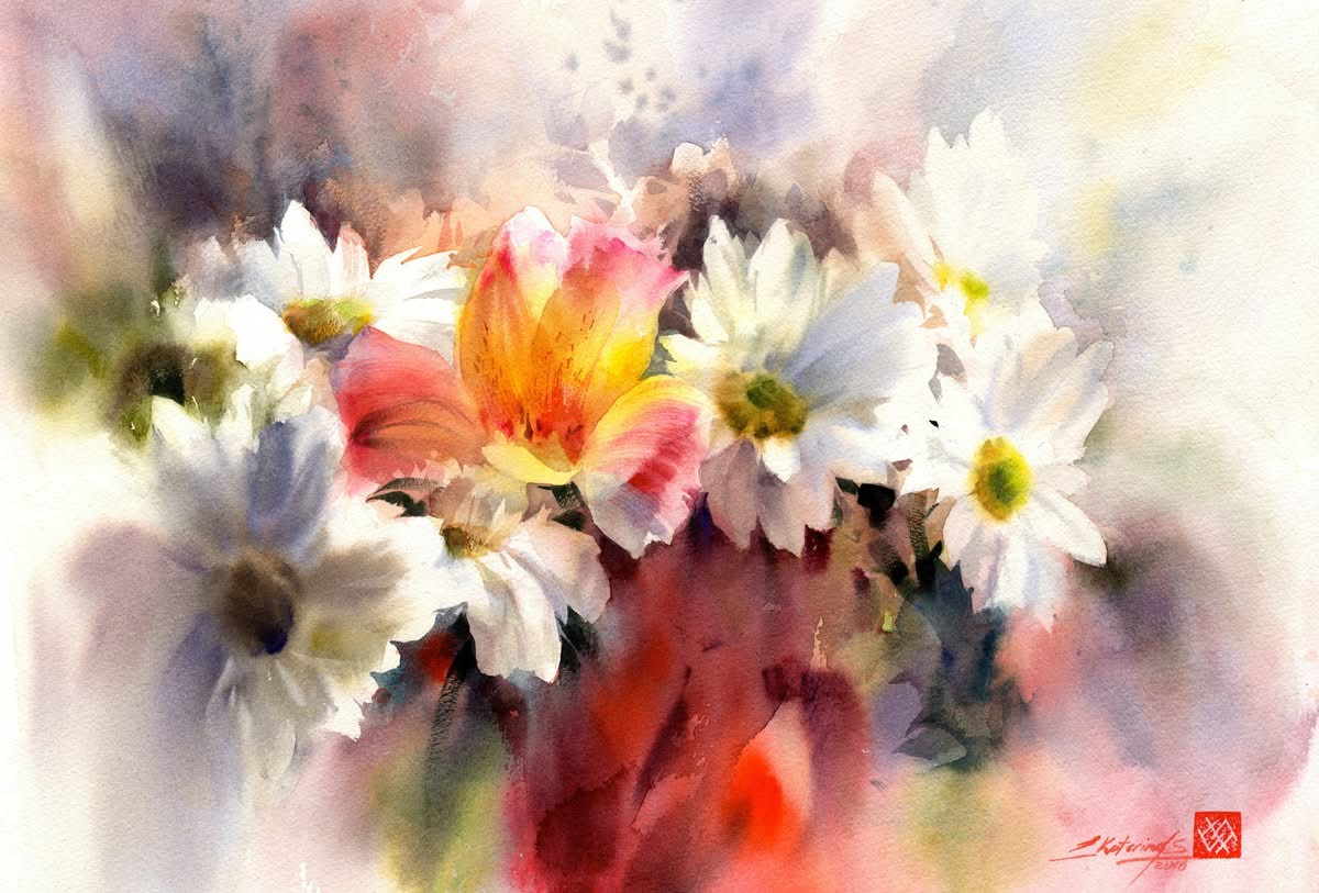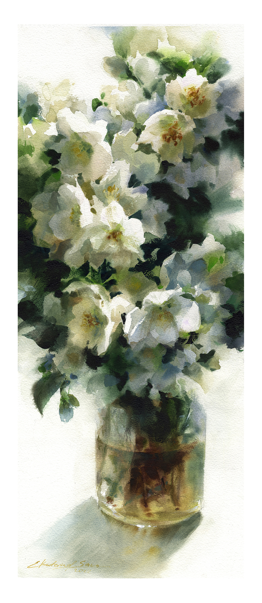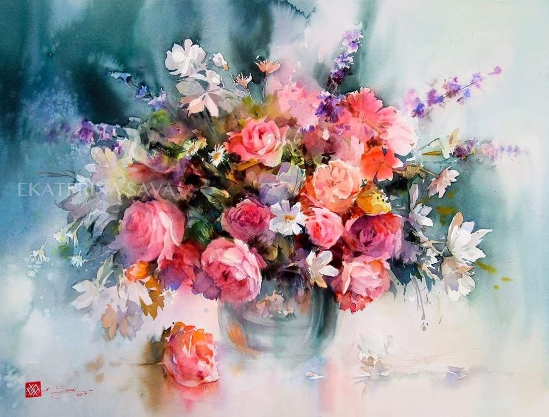 Su trabajo se centra principalmente en flores y naturalezas muertas, abordadas desde una mirada atenta a la luz, el aire y la sencillez de lo cotidiano. Para Ekaterina, la acuarela no es un medio para construir artificios, sino una forma honesta de observar el mundo: “La singularidad del mundo de la acuarela no está en crear una ilusión artificial, sino en permitir distinguir toda la simplicidad y ligereza de nuestro entorno. La pureza de las líneas naturales, la frescura de las combinaciones de color no artificiales y la presencia invisible del aire están encarnadas en las obras de esta técnica.”