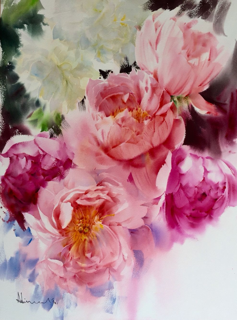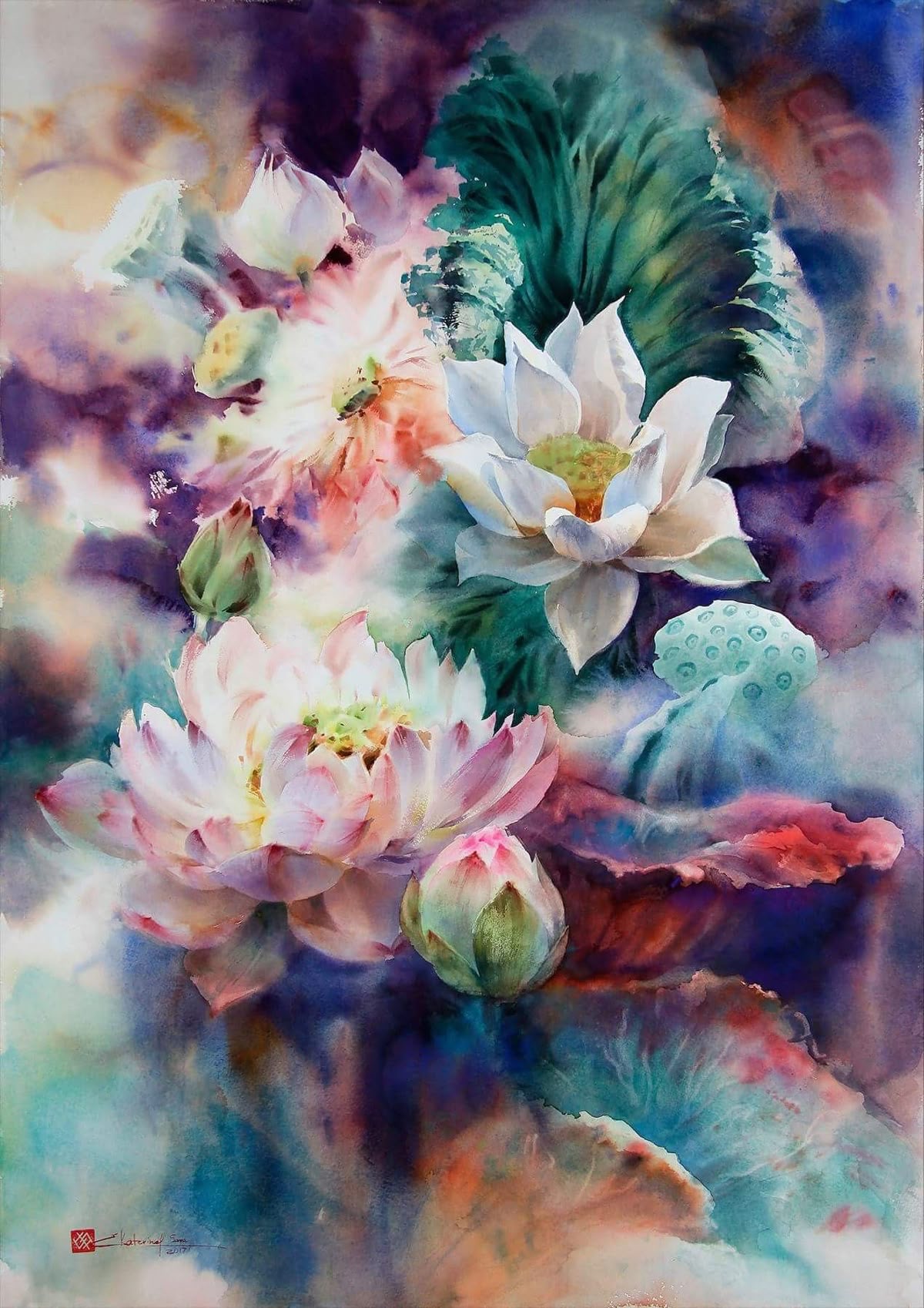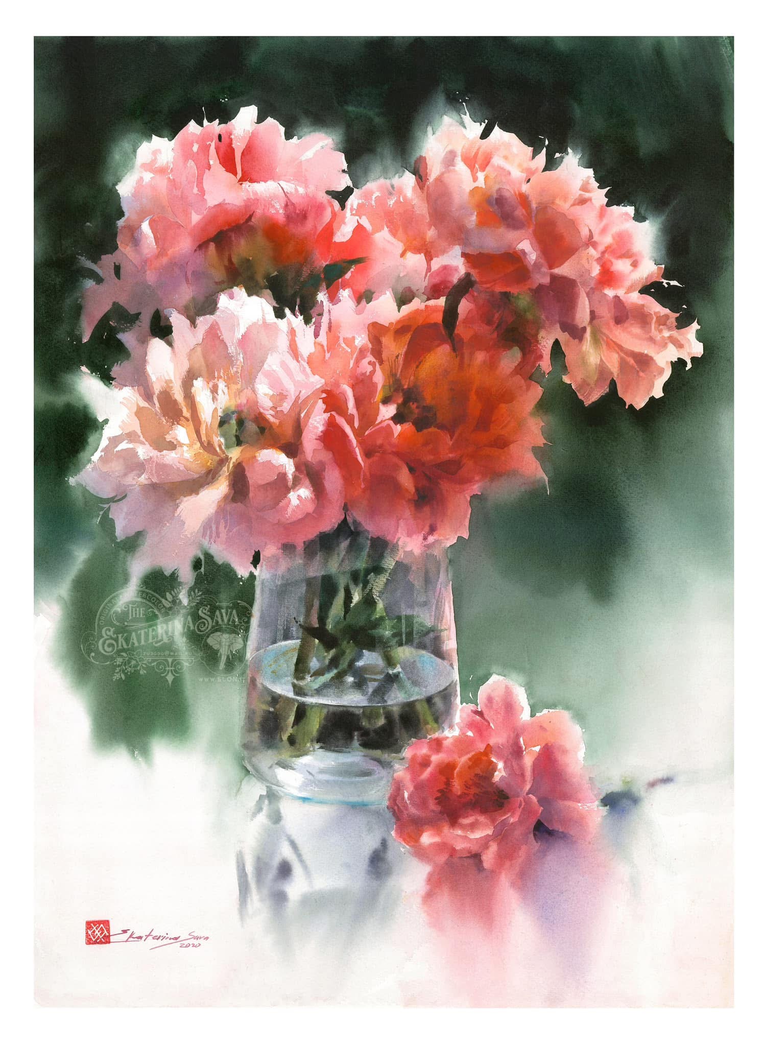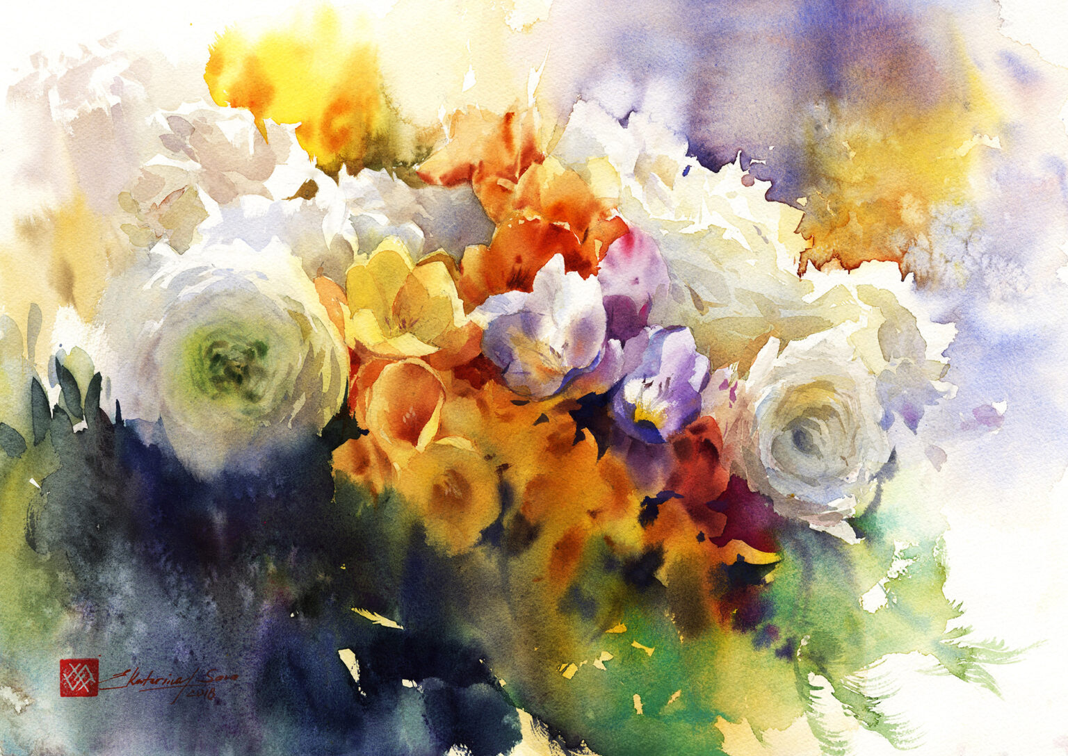 Su trabajo se centra principalmente en flores y naturalezas muertas, abordadas desde una mirada atenta a la luz, el aire y la sencillez de lo cotidiano. Para Ekaterina, la acuarela no es un medio para construir artificios, sino una forma honesta de observar el mundo: “La singularidad del mundo de la acuarela no está en crear una ilusión artificial, sino en permitir distinguir toda la simplicidad y ligereza de nuestro entorno. La pureza de las líneas naturales, la frescura de las combinaciones de color no artificiales y la presencia invisible del aire están encarnadas en las obras de esta técnica.”