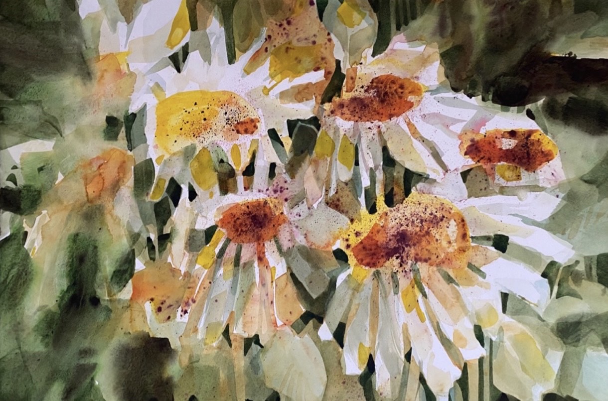 Silvia Monge (San José, Costa Rica, 1959) es una artista visual cuya trayectoria se extiende por varias décadas. Como ella misma dice, sobre su relación íntima con la acuarela y el acto de crear: “Para mí, pintar acuarela es viajar libre y espontáneamente a través de una experiencia maravillosa.” Su interés por distintos materiales y formas de expresión la ha llevado a trabajar en cerámica, vidrio, acuarela, acrílico y dibujo. Cada técnica la ha abordado a partir de sus propios desafíos y posibilidades, descubriendo cómo cada una le permite expresar su visión del mundo de manera distinta.