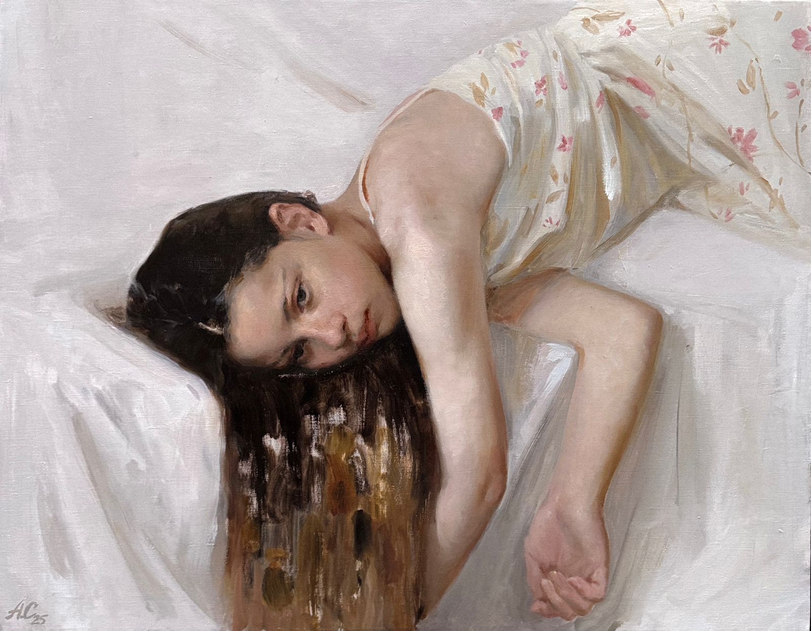 Alisa Semenova (Tchaikovsky, Perm, Rusia, 1997) es una artista visual que vive y trabaja en San Petersburgo, donde inició su formación artística en la Universidad Pedagógica Estatal Herzen de Rusia y posteriormente en la Academia Imperial de las Artes I. Repin. Su práctica, desarrollada desde la infancia, se centra en el dibujo y la pintura, con especial atención al retrato y a la exploración sensible de la figura humana. Ha participado en exposiciones en Moscú y San Petersburgo, y ha sido finalista y reconocida en el prestigioso Almenara Art Prize en España, en la categoría de retrato. Su obra se ha exhibido en instituciones como la Unión de Artistas de San Petersburgo, la New Tretyakov Gallery y el Erarta Museum of Modern Art, y forma parte de colecciones privadas en Rusia, Italia, Estados Unidos, Alemania, Malasia, Mongolia y China. Además, ha impartido más de 30 clases magistrales de dibujo y pintura a nivel internacional, reuniendo hasta 70 participantes por sesión, y ha sido invitada a dirigir master classes en China y Europa, consolidando su labor docente y su presencia en la escena artística global. Sobre su trabajo, comenta: “Siempre me ha interesado representar a las personas; desde muy pequeña quería capturar rostros, manos y miradas, porque eso es lo que más me fascina y lo que realmente cuenta una historia.