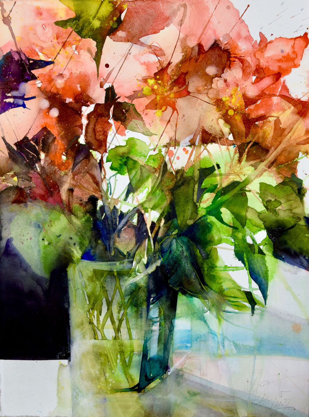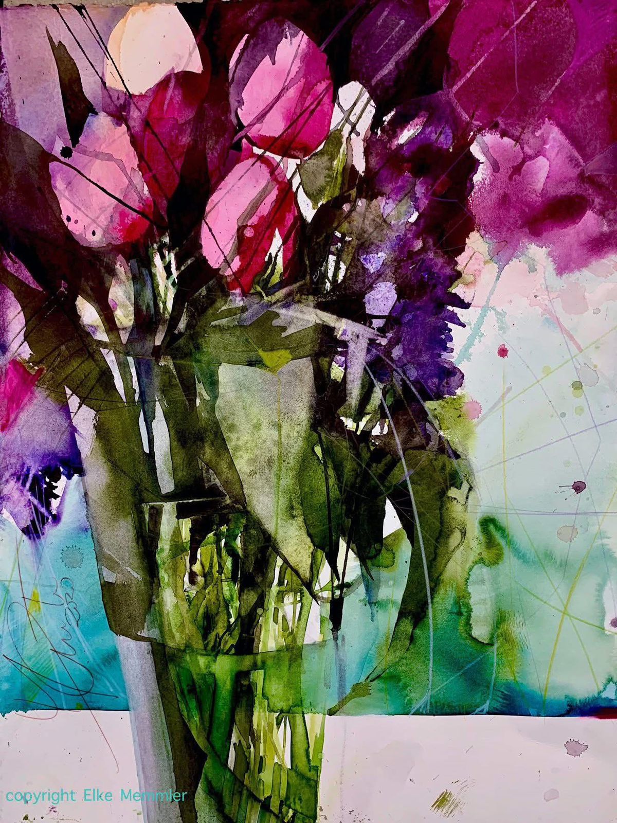 La acuarela, como el expresionismo, es mi patria artística. Es una herramienta por un lado y una pasión por el otro. En concreto, no me interesa la realidad botánica, sino la impresión que deja una flor en mí. Esta impresión actúa en mí y surge mi expresión, mi pintura. La acuarela como técnica ofrece la mayor variedad de expresiones. Una acuarela moderna y expresiva necesita de todo. Necesita lo concreto y lo difuso, lo fuerte y lo tranquilo, lo dominante y lo modesto, lo luminoso y lo oscuro, algo de todo, como el ying y el yang. En el equilibrio está el secreto."